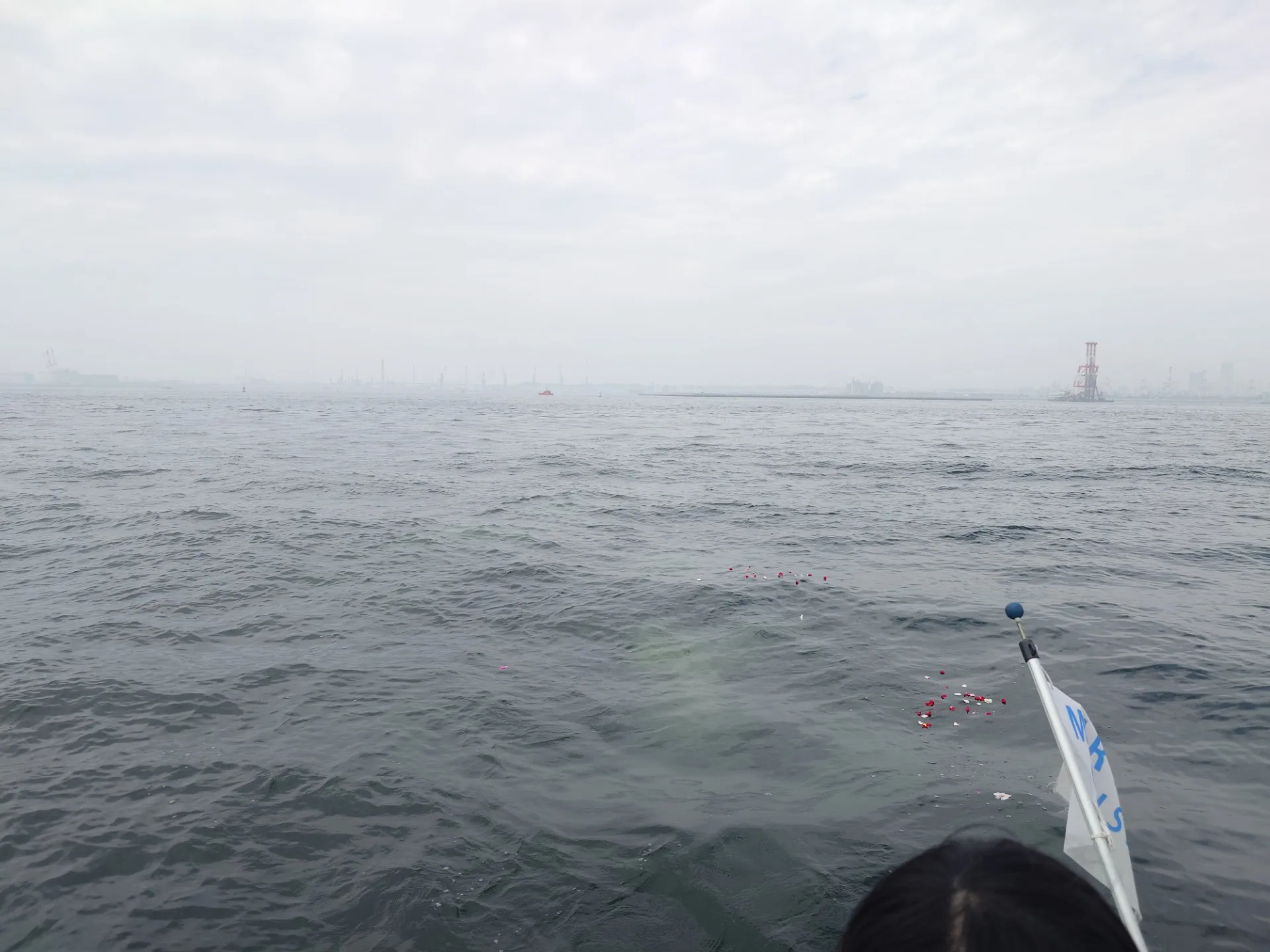 10:00過ぎに、お客さまにご乗船頂き、横浜港沖にて無事に散骨を実施。