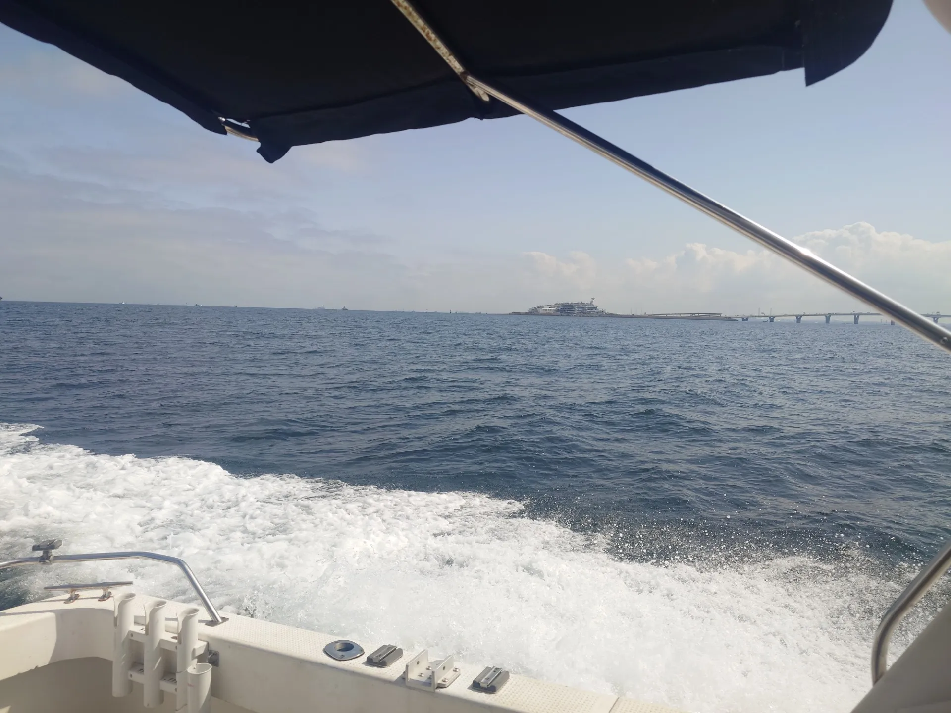 午後の目的地は、ダイナミックな景観が広がる羽田沖。 午前中からの快晴が続き、船上はポカポカとした春の陽気に包まれました。
